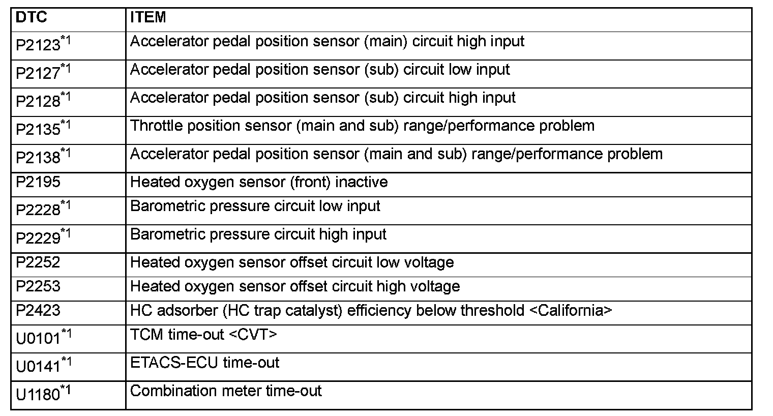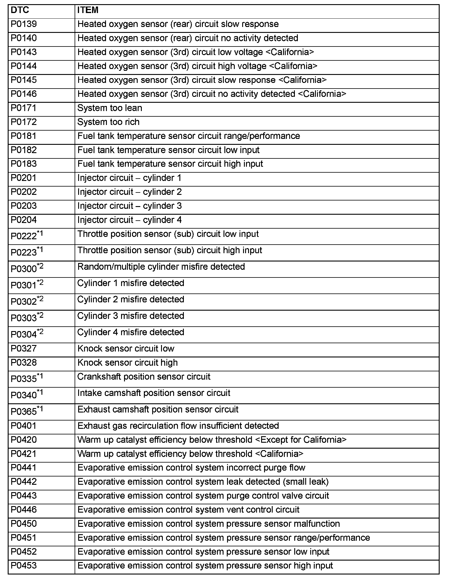- The codes marked with a "*2" in the diagnosis code number column have the following two conditions for illuminating the Malfunction Indicator Lamp (SERVICE ENGINE SOON or Check Engine Lamp).