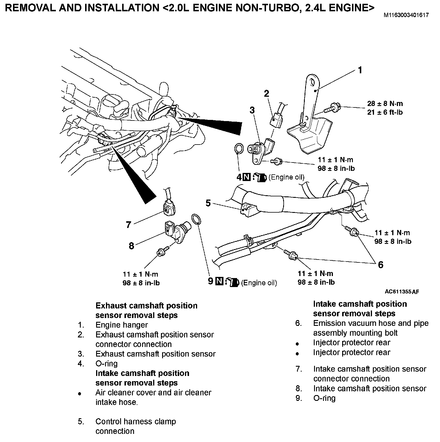 REMOVAL AND INSTALLATION [2.0L ENGINE NON-TURBO, 2.4L ENGINE]