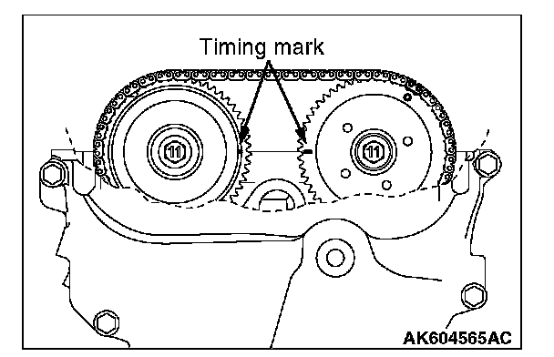 11. After installing the timing chain, measure the valve clearance using the procedure 3 to 6. Confirm the clearance is within the standard value.