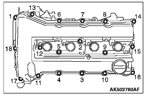 2) Tighten to the specified torque in order shown in the illustration.