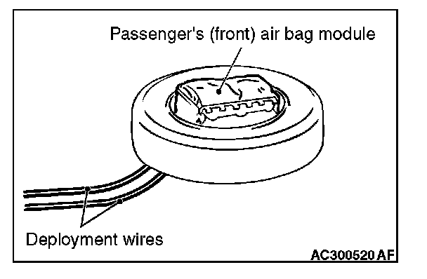 CAUTION: Once disconnected, both electrodes of the passenger's (front) air bag module connector short automatically to prevent accidental deployment caused by static etc. Still, in consideration of possible accidental deployment, store the air bag module on flat place with deployment surface facing up. Do not put anything on it.