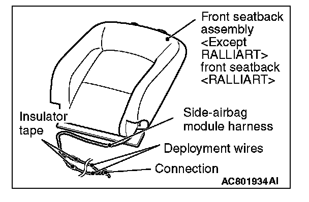 CAUTION: Once disconnected, both electrodes of the side-air bag module connector short automatically to prevent accidental deployment caused by static etc. Still, in consideration of the accidental deployment, store the side-air bag module on flat place with deployment surface facing up. Also, do not put anything on it.
