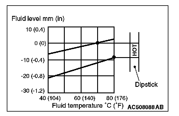 NOTE: When a certain amount of time is required to warm up the transmission fluid to the normal operating temperature 70 - 80 degrees C (158 - 176 degrees F), check the oil level referring to the characteristics chart.