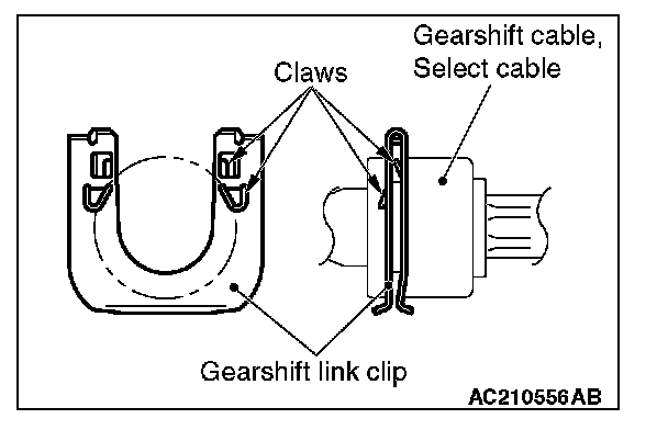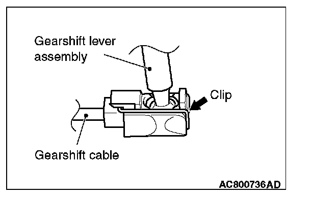 When removing the gearshift cable, be careful not to deform it because the clip is opened forcibly.