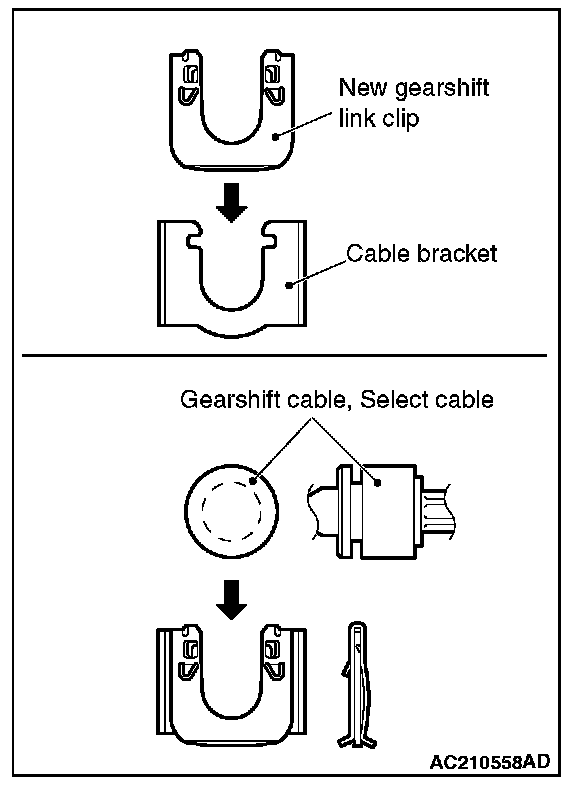 Insert thoroughly the gearshift link clip, gearshift cable and select cable until they click in place.