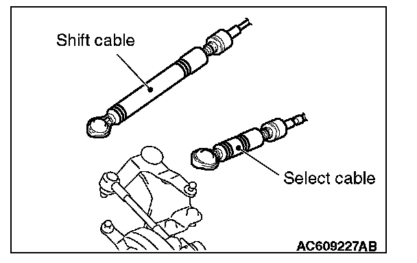 2. Securely fit the tips of the gearshift cable and the select cable.
