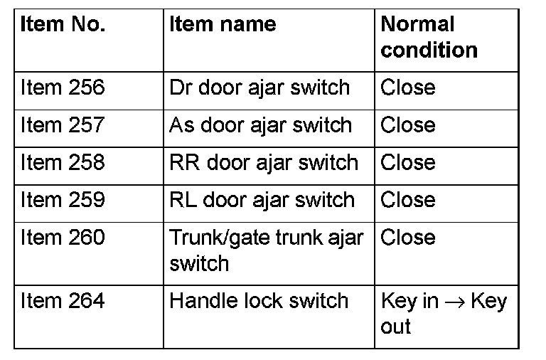 NO [Normal condition is not displayed for item No. 264.] : Refer to Inspection Procedure 3: ETACS-ECU does not receive any signal from the key reminder switch. Inspection Procedure 3