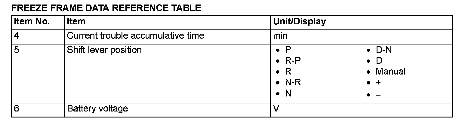 FREEZE FRAME DATA REFERENCE TABLE