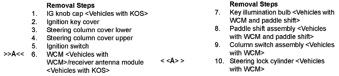 [[A]] STEERING LOCK CYLINDER REMOVAL [VEHICLES WITH WCM]