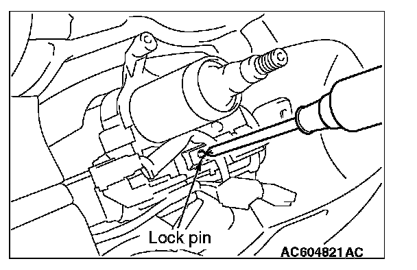 2. With using a cross-headed screw driver (small) or similar items to press in the lock pin, remove the ignition key, and then remove the steering lock cylinder.