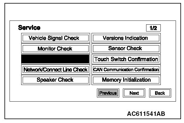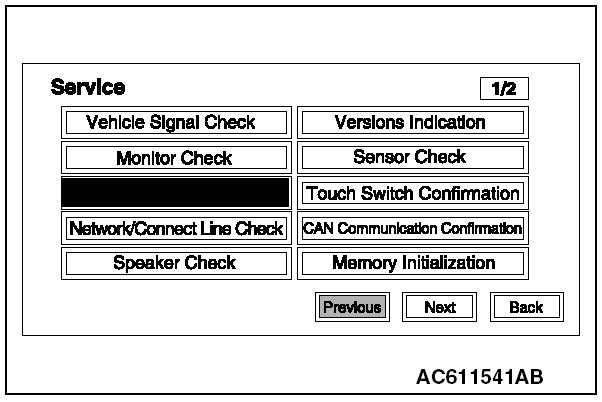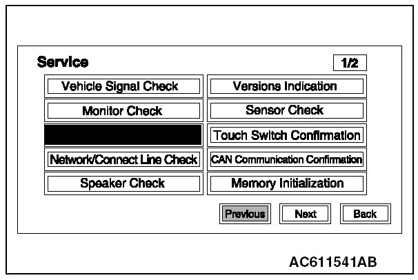 1. Select "Vehicle Signal Check" on "Service" screen.