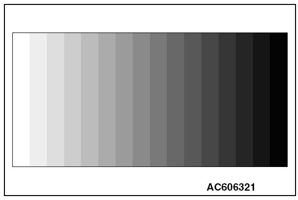 3. When "Enter" is pressed on the navigation unit joystick while the eight color bars are shown, gray scale will be displayed with a 16-step gradation.