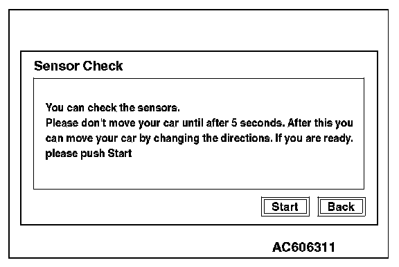 2. The sensor check with the vehicle stationary will be executed in accordance with the screen.