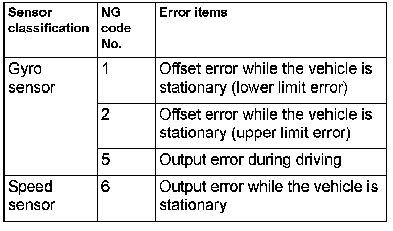 The speed sensor and gyro sensor will be checked, depending on the vehicle conditions such as driving condition, stationary condition and travel direction change.