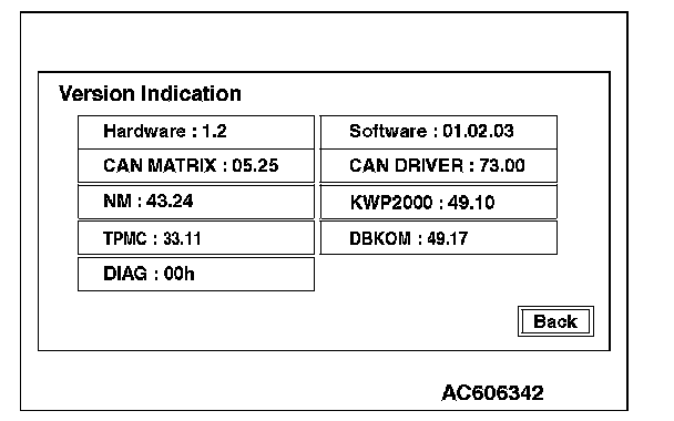 3. If "Version Indication" is selected on "CAN Communication Confirmation" screen, the version for each item is displayed.