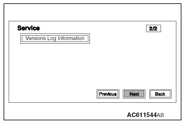 2. Select "Service Data Log" on the "Versions Log Information" screen.