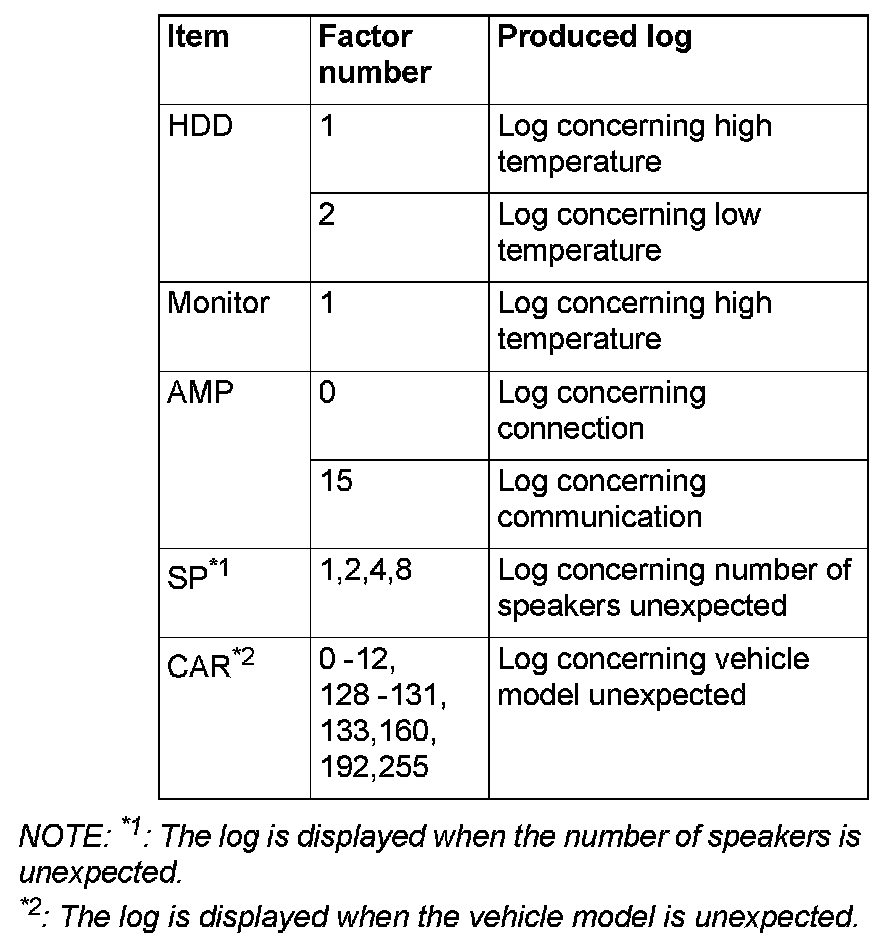 EACH LOG INFORMATION: FACTOR CODE TABLE