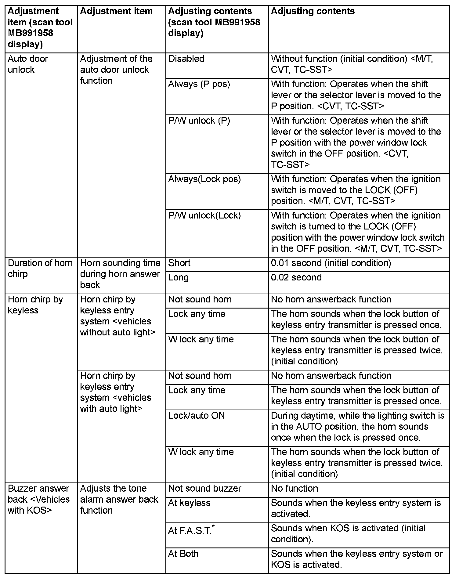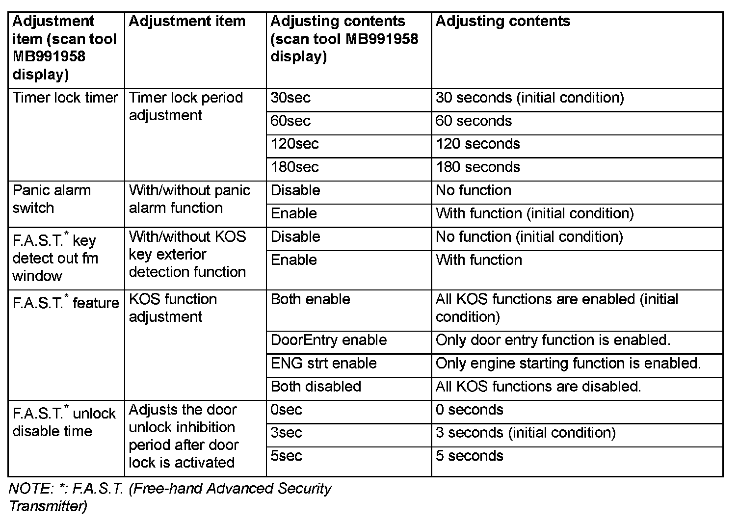By operating the ETACS system or MMCS of scan tool MB991958, the following functions can be programmed. The programmed information is held even when the battery is disconnected.