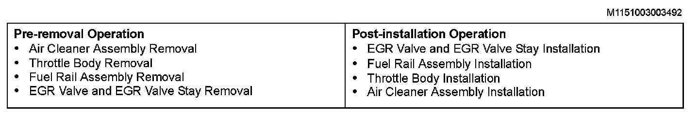 NOTE: The tightening of the fuel rail assembly, the intake manifold assembly and the injector protector front has the specified order. Temporarily tighten the intake manifold assembly and injector protector front mounting bolts and nuts.