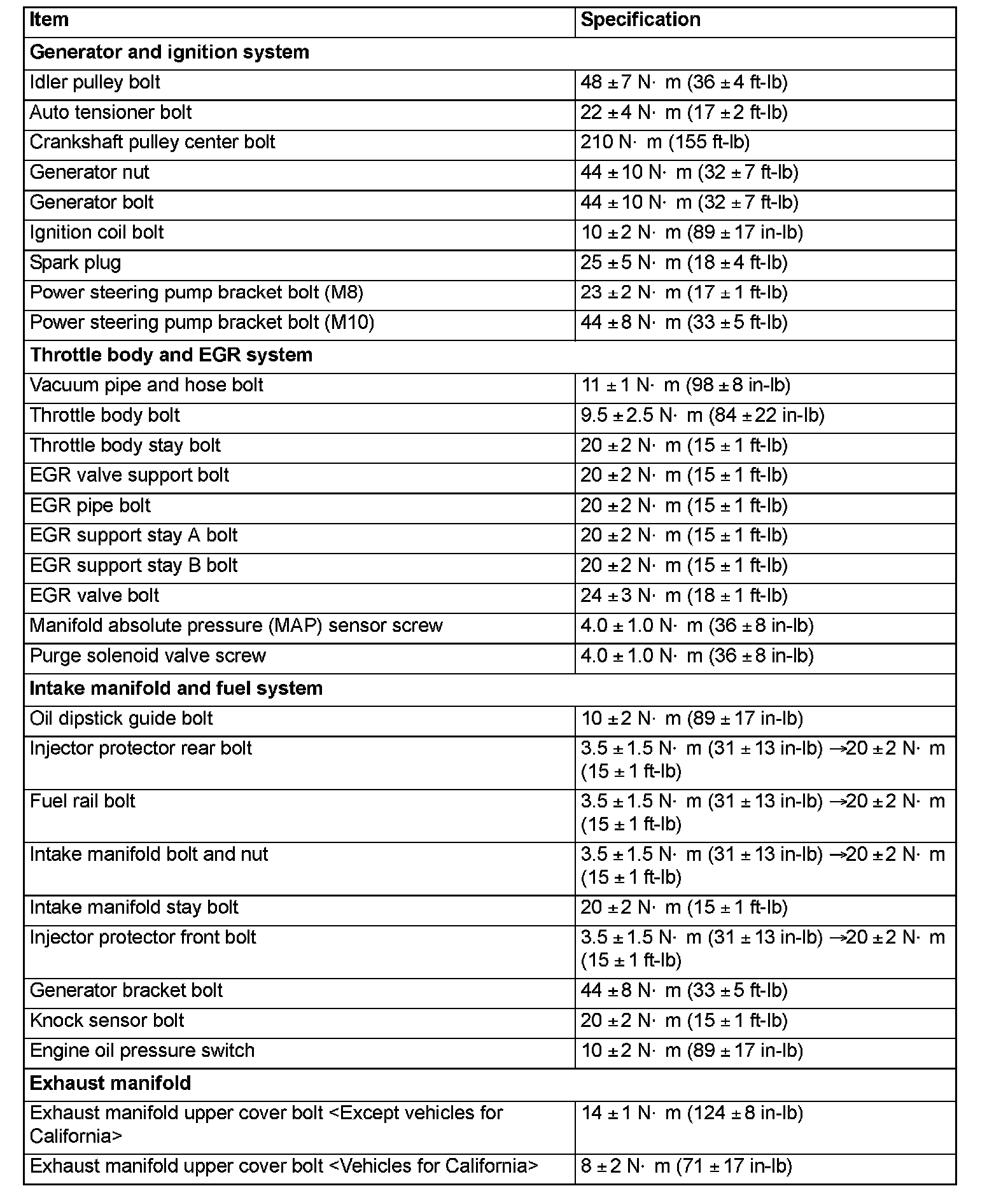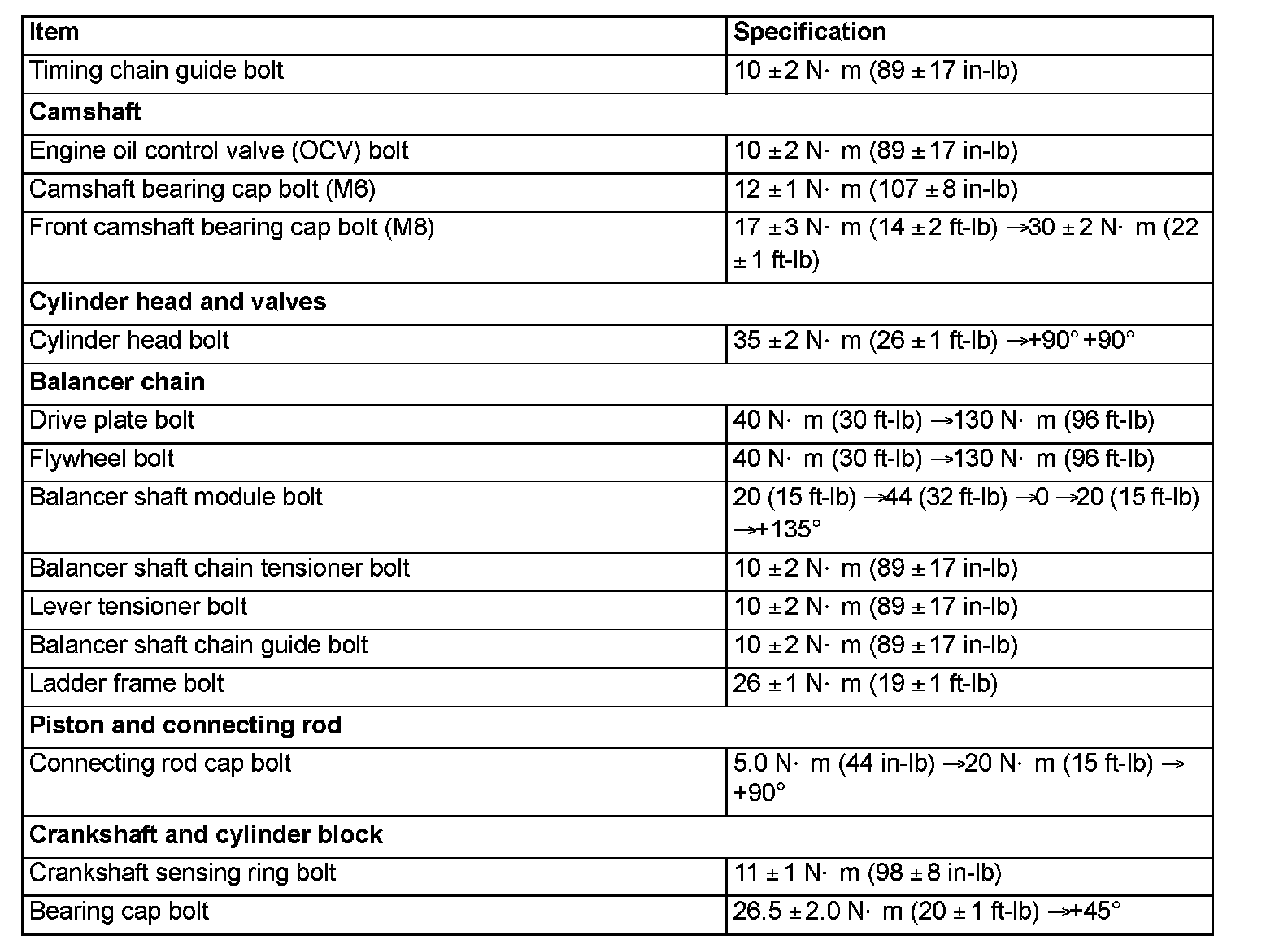 Torque Specifications