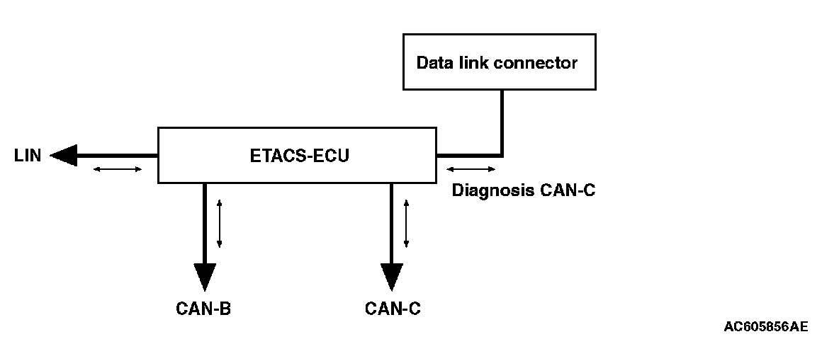 As a central ECU for the on-vehicle communication network system established in the vehicle, the gateway function is integrated into ETACS-ECU. The gateway function offers the following functions: