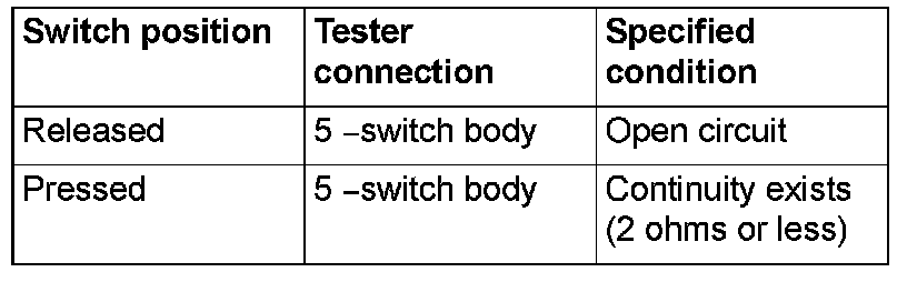 Remove the center panel unit. Then check continuity between the switch terminal and switch body.