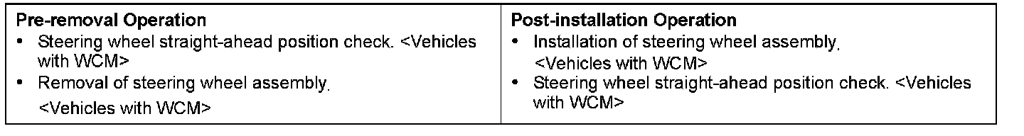 - Before removing the steering wheel and driver's air bag module assembly, refer to Service Precautions and Driver's Air Bag Module and Clock Spring [GTS] or [RALLIART] [Vehicles with WCM].