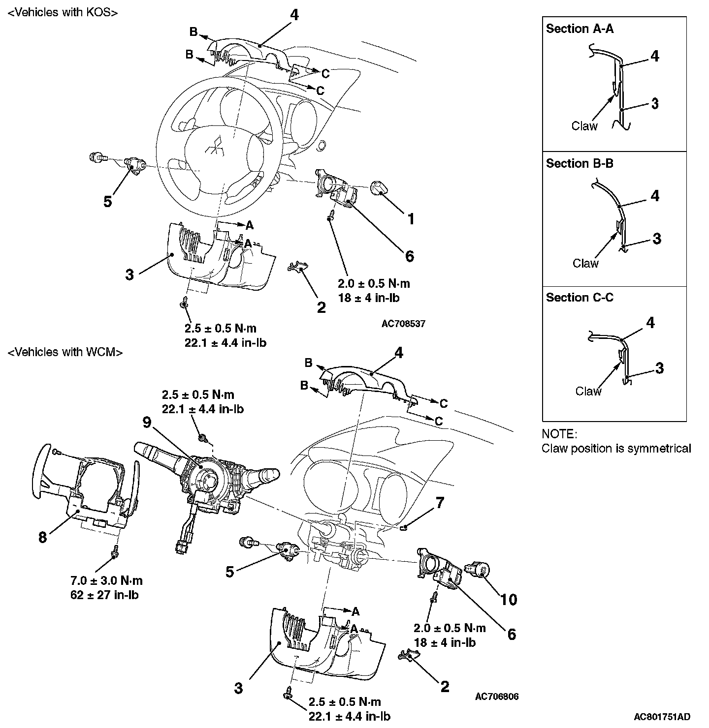 - After the installation, perform a calibration for the ASC-ECU to learn the steering wheel sensor neutral point (Refer to On-vehicle Service -Steering Wheel Sensor Calibration). [Vehicles with WCM and ASC]