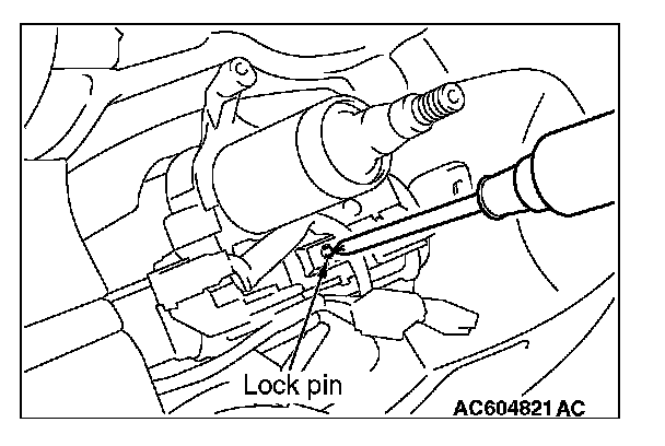 2. with using a cross-headed screw driver (small) or similar items to press in the lock pin, remove the ignition key, and then remove the steering lock cylinder.