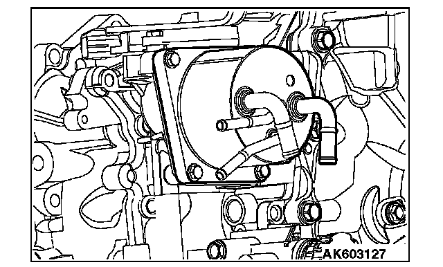 13. Remove the transmission fluid cooler from the transaxle case, and detach the O-ring from the cooler.