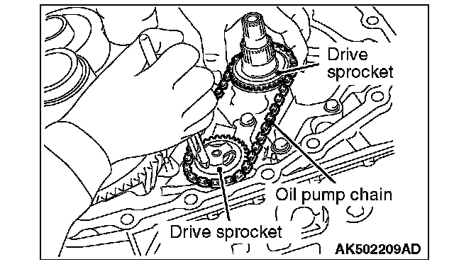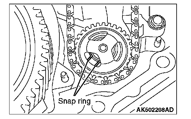 28. Expand the snap ring, and remove the driven sprocket, oil pump chain, and drive sprocket.