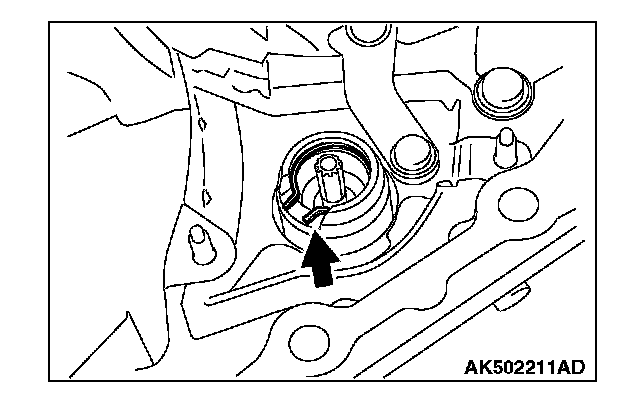 68. Using the special tool MB992139, compress the return spring, and remove the snap ring from the transaxle case.