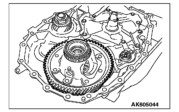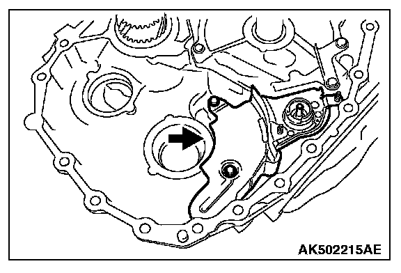 18. Using cylinder gage etc., measure the mounting bore diameter of reduction gear bearing outer race at the converter housing side; if the standard value is not satisfied, then replace the converter housing.