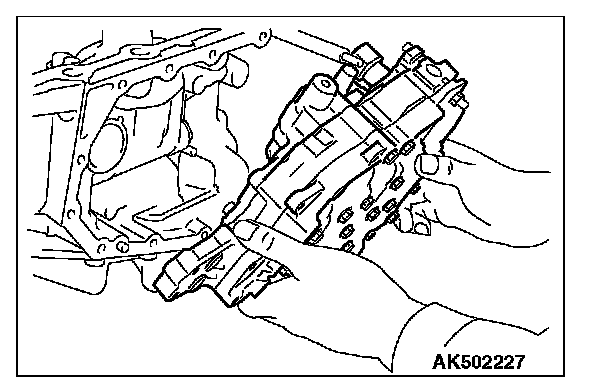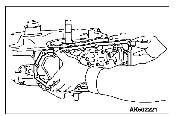 NOTE: Tilt the control valve assembly, and after removing from the manual shaft side, remove the terminal body from the transaxle case.