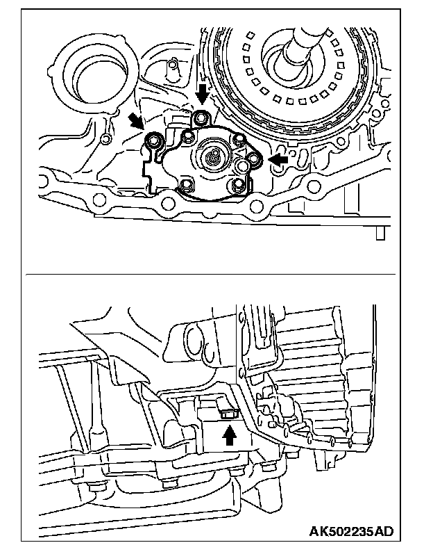 50. Remove the oil pump from the transaxle case. (One fastening bolt is installed at the backside from the transaxle case side.)