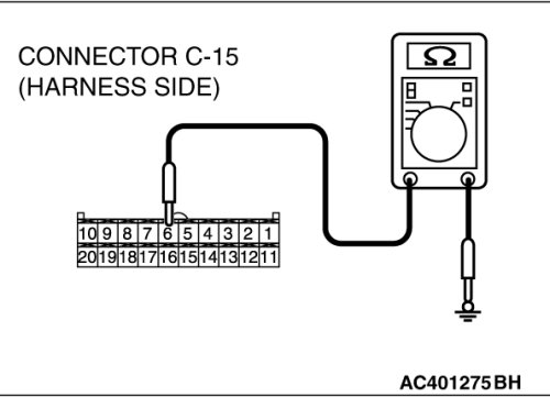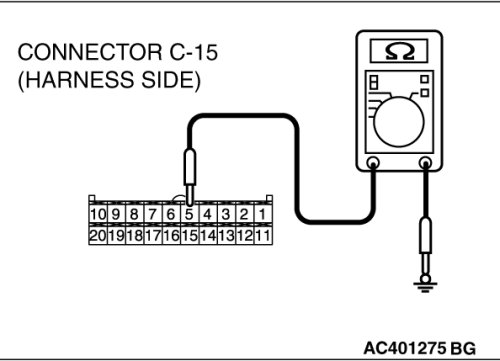 (1)Disconnect A/C-ECU connector C-15, and measure the resistance at the wiring harness side.