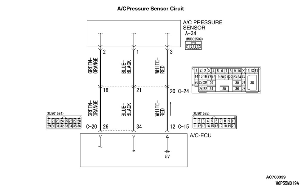 Q. Is A/C pressure sensor connector A-34 in good condition?