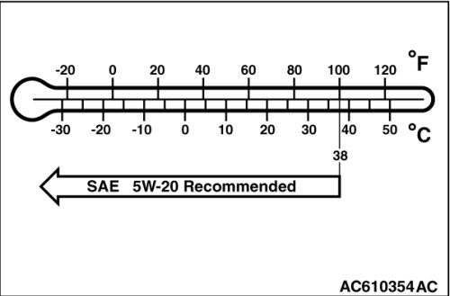 SAE 5W-20 engine oil is strongly recommended for optimum fuel economy and cold starting. SAE 10W-30 may be used when the normal operating temperature is above 38°C (100°F).