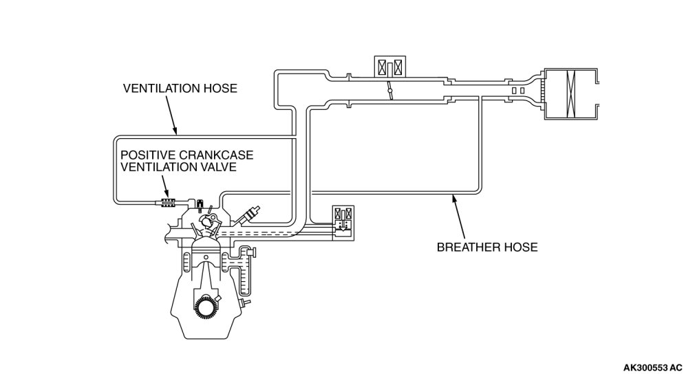 The positive crankcase ventilation (PCV) system prevents the escape of blow-by gases from inside the crankcase into the atmosphere.