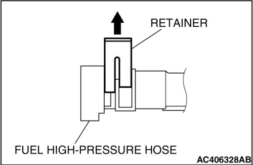 Pull up the retainer of fuel high-pressure hose to unlock before installing.