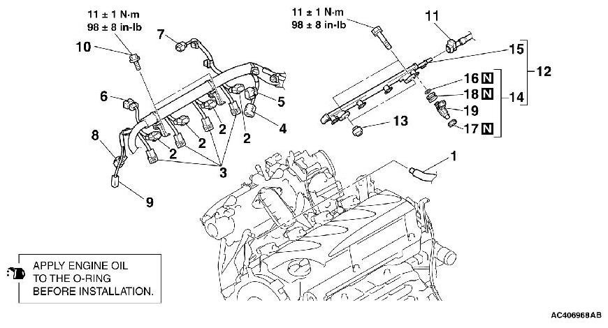 When the fuel injector replacement is performed, use scan tool MB991958 to initialize the learning value Initialization Procedure for Learning Value in MFI Engine).