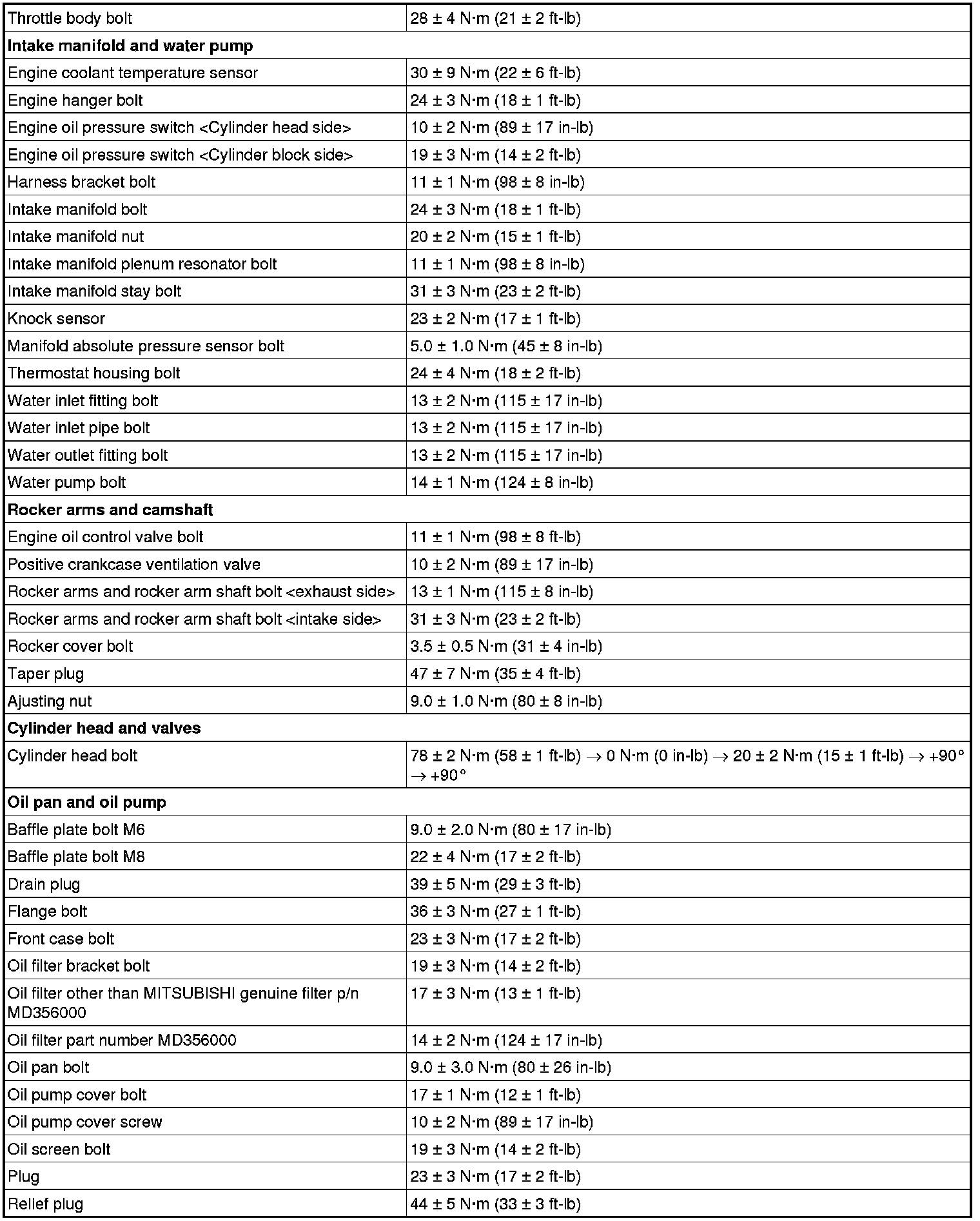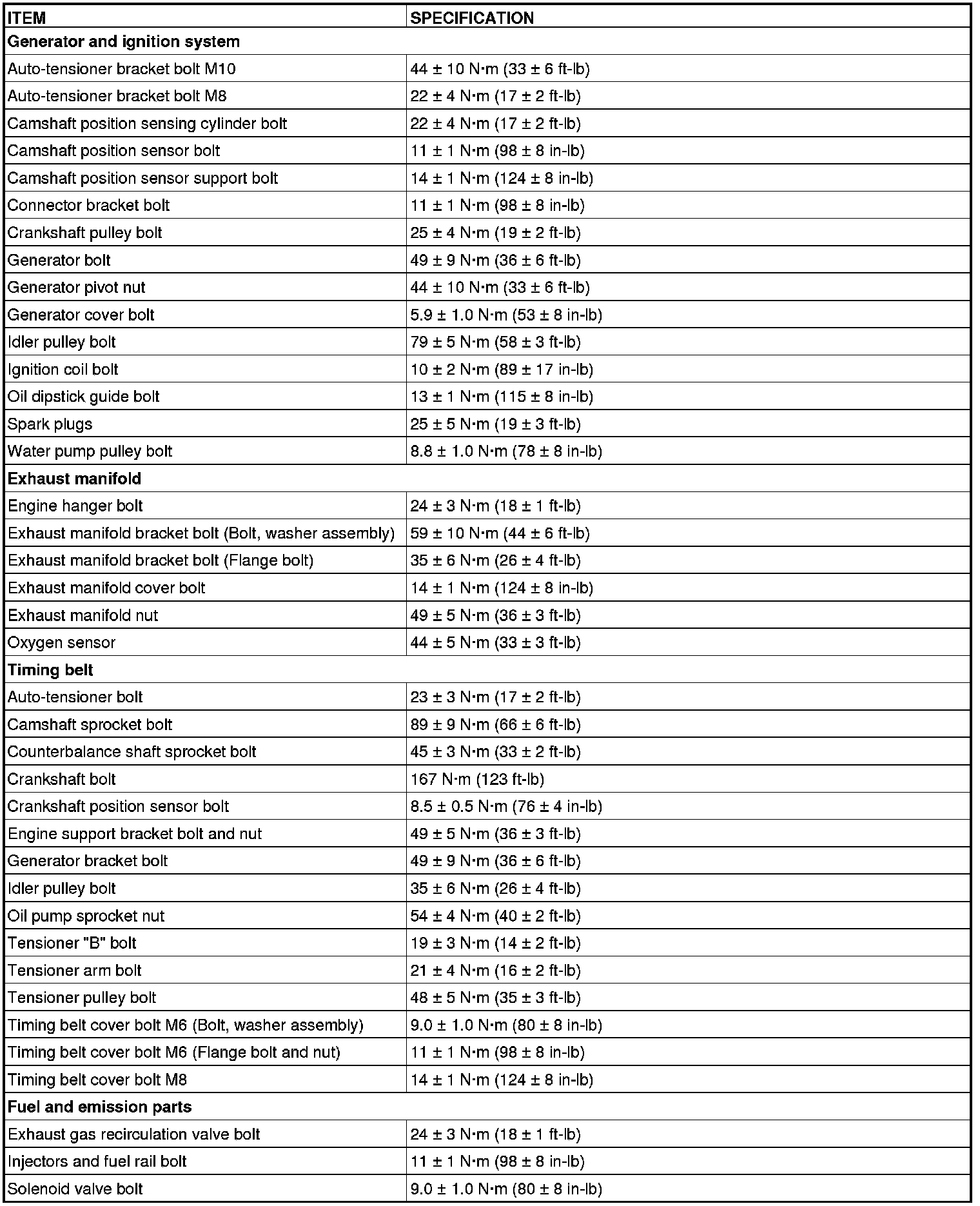 Fastener Tightening Specifications
