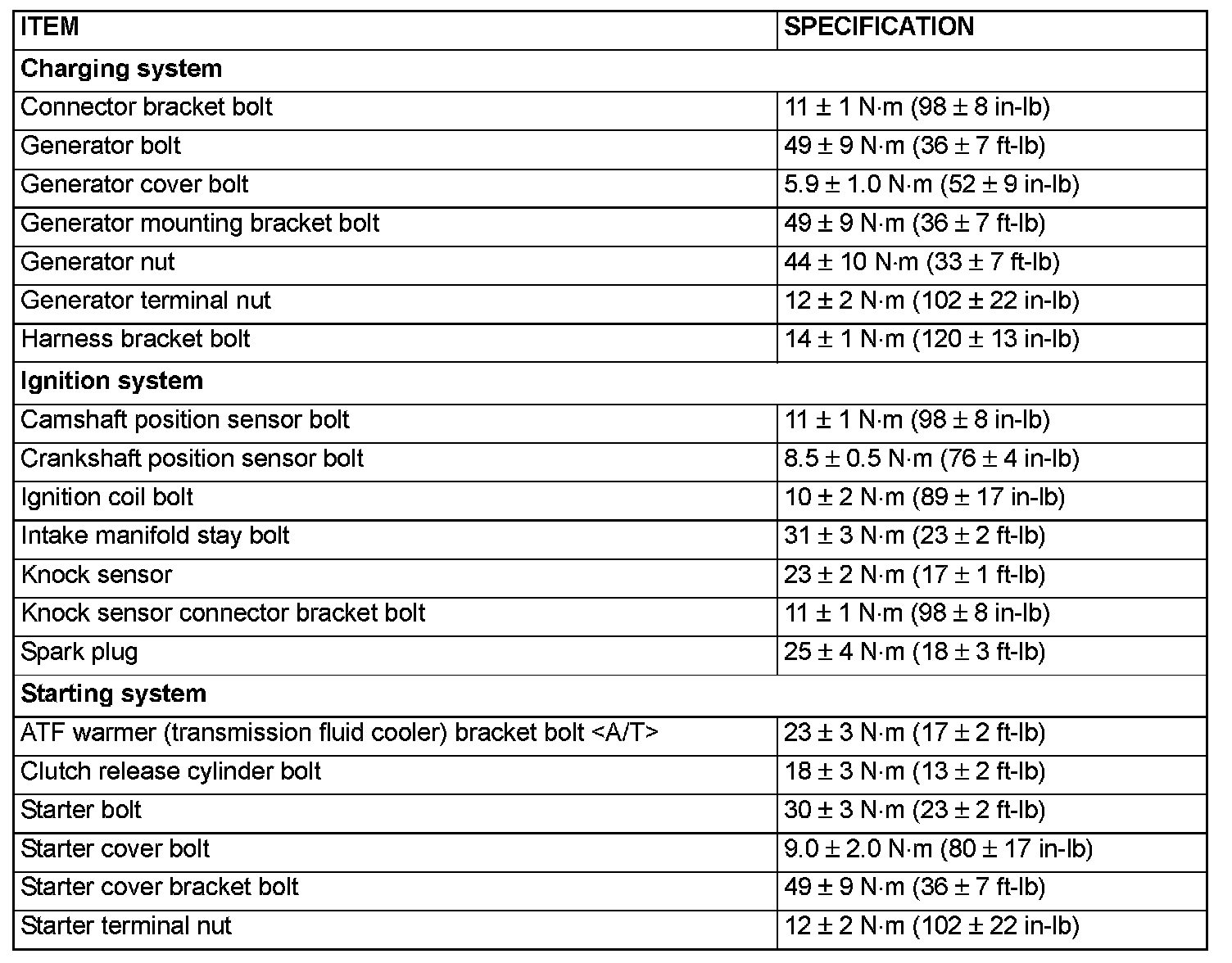 FASTENER TIGHTENING SPECIFICATIONS