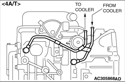 4. If flow is within acceptable limits, reconnect the cooler line. Then fill the transaxle to the proper level, using DIAMOND ATF SP III.