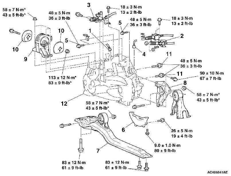 *: Indicates parts which should be temporarily tightened, and then fully tightened after placing the vehicle horizontally and loading the full weight of the engine on the vehicle body.