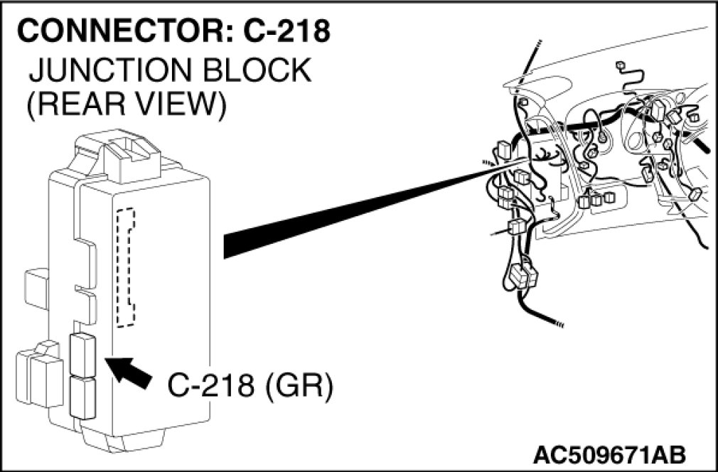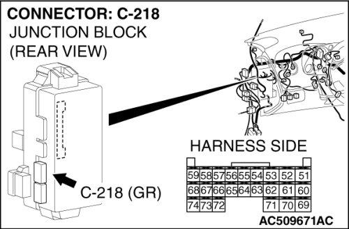STEP 4. Check ETACS-ECU connector C-218 for loose, corroded or damaged terminals, or terminals pushed back in the connector.