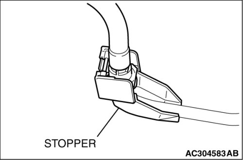 After connecting the fuel high-pressure hose, slightly pull it to ensure that it is installed securely. Also confirm that there is a play approximately 3 mm (0.12 inch). Then install the stopper securely.
