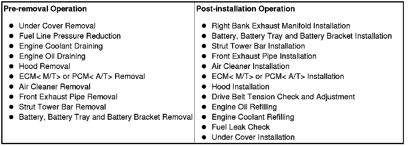 Do not remove the center exhaust pipe, and pull out the exhaust manifold (right bank) between the crossmember and cylinder block.
