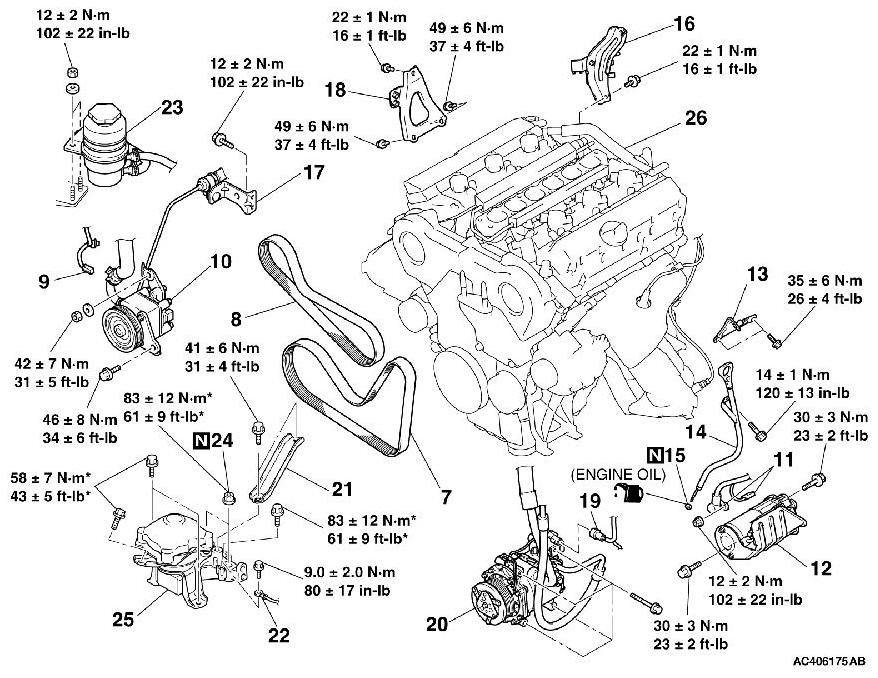 - *: indicates parts which should be temporarily tightened, and then fully tightened with the engine weight applied on the vehicle body.