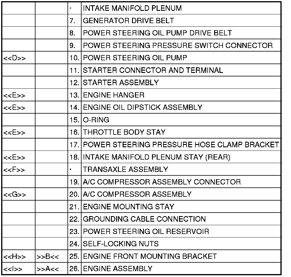 [[E]] ENGINE HANGER/ENGINE OIL DIPSTICK ASSEMBLY/THROTTLE BODY STAY/INTAKE MANIFOLD PLENUM STAY (REAR) REMOVAL